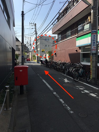 そのファミリーマートを左に曲がります。