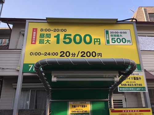 昼間最大8:00~20:00まで1,500円(注意:No.1のみ